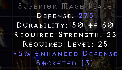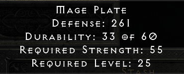 A popular base for the runeword Enigma because of its extremely low strength requirement relative to its base armor. Naked characters with a