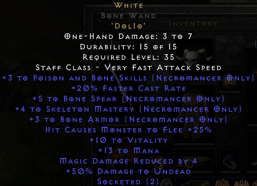 The first Wand I shopped with +3 Bone Spear was a Yew Wand, and I didn't realize/remember that they can only 1 socket max. It was superior so I gave it to Larzuk, and imagine my surprise when he only gave it 1 socket. Wasted a Larzuk quest, so that was a bit embarrassing.