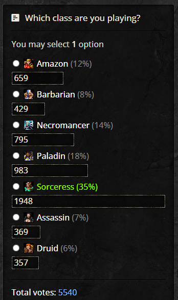 I'd argue that both Assassin and Zon are stronger than necro even that necro is more played. Shifter druids aren't really "weaker" than barbs, they just tend to be more annoying to play. Enigma issues, physical immune skipping, no hork like barb, ect.