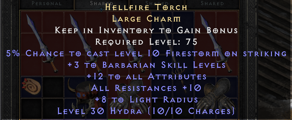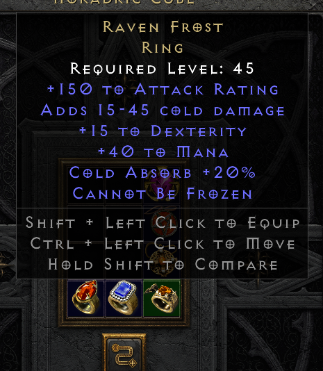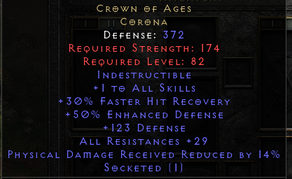 Oh, is true. I have one keeped with 2 perfect diamonds in a mule for future non-paladin char leveling.Snakecharmed wrote: 7 months agoA 2-socket Monarch of Deflecting is called Moser's Blessed Circle.