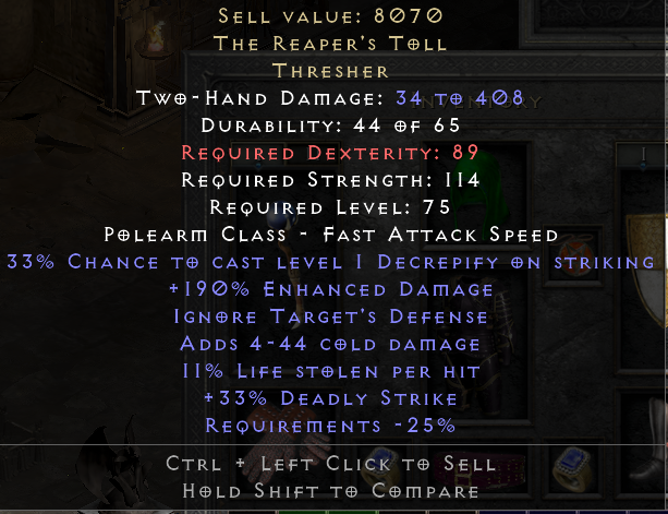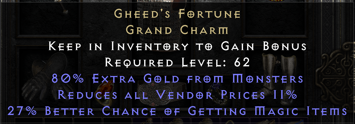 Seems Gheed isn't too fortunate in your version of Sanctuary. But hey, still better than no fortune.melty wrote: 2 months agoPlaying this game for years, and I finally see a unique grand charm drop (outside a Terror zone). Wow, my first Gheed's! I don't ask Cain to identify it for me; I want to use a scroll personally.