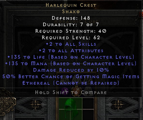 Also, if that not your first Shako, an ethereal Shako is not bad on a MF merc ; and a selfdrop perf bad Anni is quite a good twisted token of bad luck. I would keep both too.