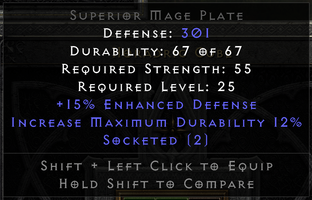 Hmm. Was a bit sad of that one, so I sacrified a Hel and Lo (others do not really count...), and decided to reroll. To get +26/+1.125. Sure, it's objectively better, but...Necrarch wrote: 2 years agoJust made my 3rd Fortitude ever (this time in Eth sup 4os Wire Fleece). First one was a perfect (+30 all, +1.5 life/lvl), second was anti-perfect (+25 / +1). What was it gonna be ?