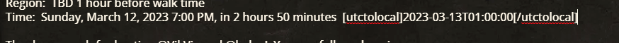 Time: Sunday, March 12, 2023 7:00 PM, in 2 hours 50 minutes2023-03-13T01:00:00This timestamp has been automatically converted to your local date/time for convenience. The format is DD/MMM/YYYY, HH:MM am/pm. This is based off your browser time.
