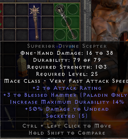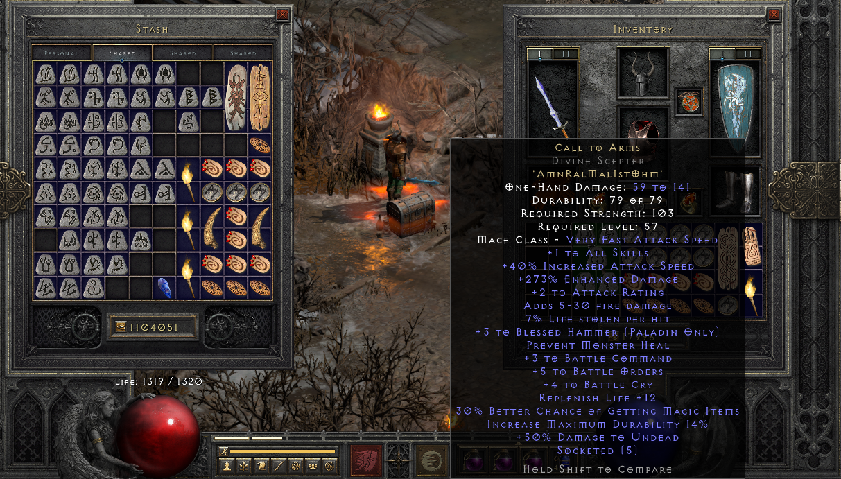 So, i shouldn't Charsi that ? Gonna try my luck, 69x Jah sounds goodBisu wrote: 3 years agoWhat makes you think so? Bases with +3 BH and Concentration are highly sought after, and are worth a lot. 5 OS for CTA, and 4 OS for Fortitude.mockingbirdreal wrote: 3 years agoI don't think the +skill to Blessed Hammer in CTA can increase the level of this skill when you use it in the main-hand.Bisu wrote: 3 years agoIf you are playing a HammerDin with Enigma with Archon Plate base, or your HammerDin equips Thundergod's Vigor routinely, then this base could be used for CTA.