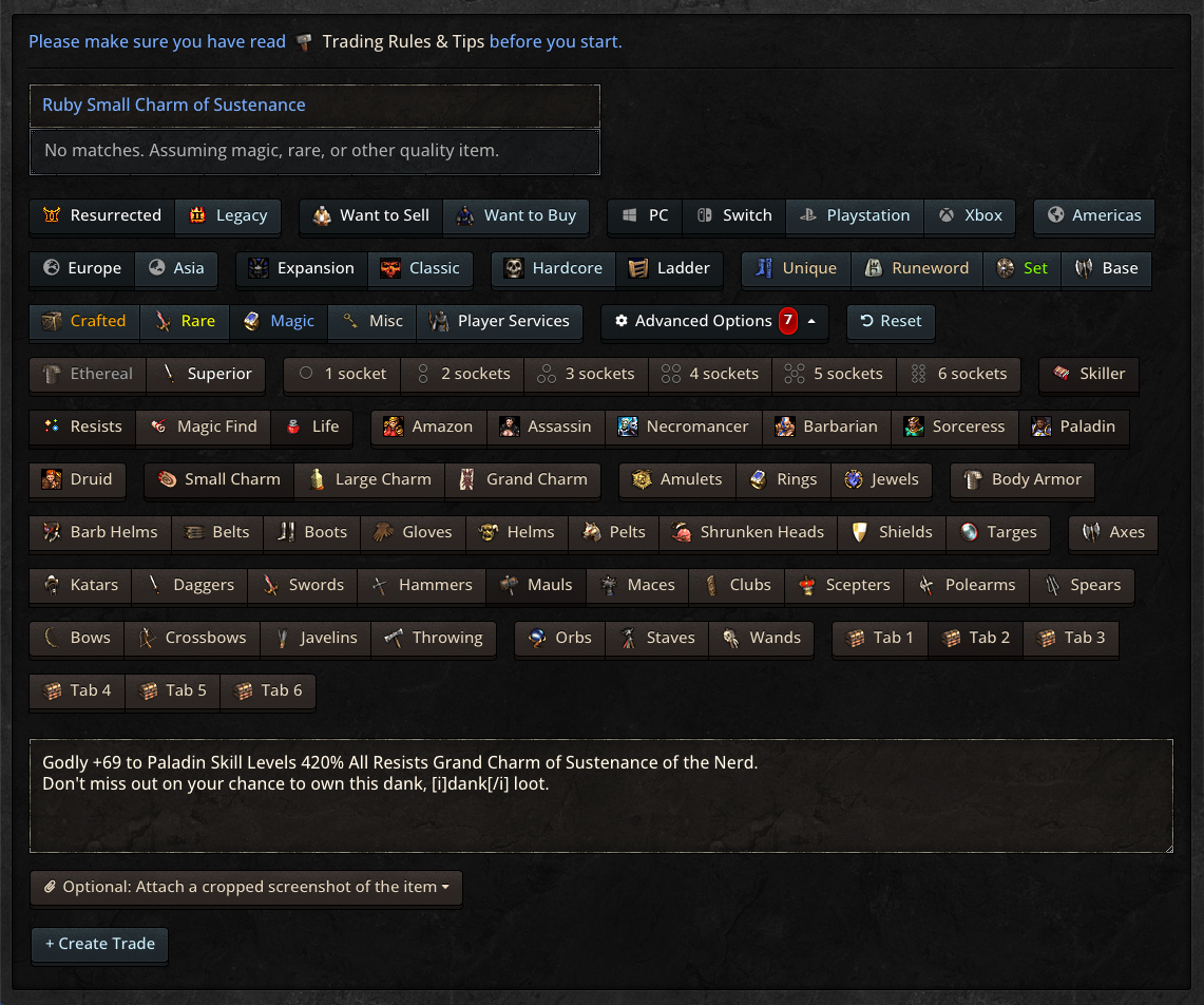 This is the coolest trading site in D2 history, finally a non-RMT option with a friendly community and active user base, really appreciate what you've done here
