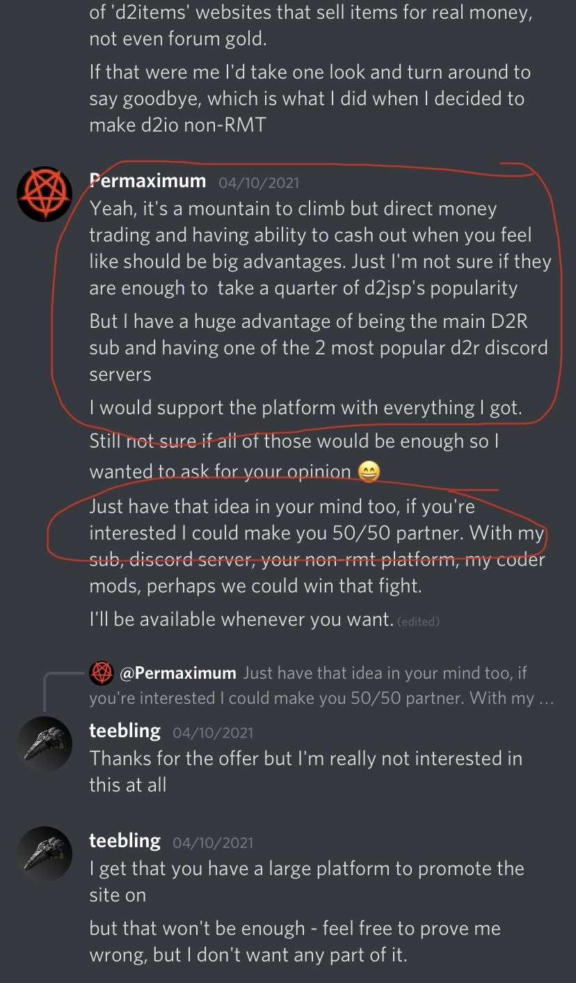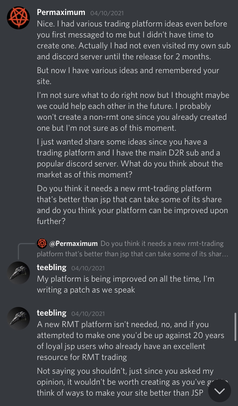 Here's a conversation he had with me in October last year. TLDR he wanted to use this questionably sourced reddit memberbase to start his own RMT website, and asked me if I wanted to partner with him on it.