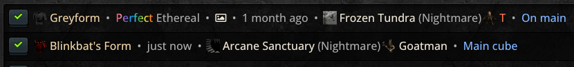 • The main grail view layout can be left as compact/condensed with each row scrollable horizontally to reveal further details on each find, or it can be expanded (Wide button) for easier legibility. Each item has a button to add/edit an item entry, and for each item's row that has an entry it shows all of its relevant records that you inputted when adding or importing.