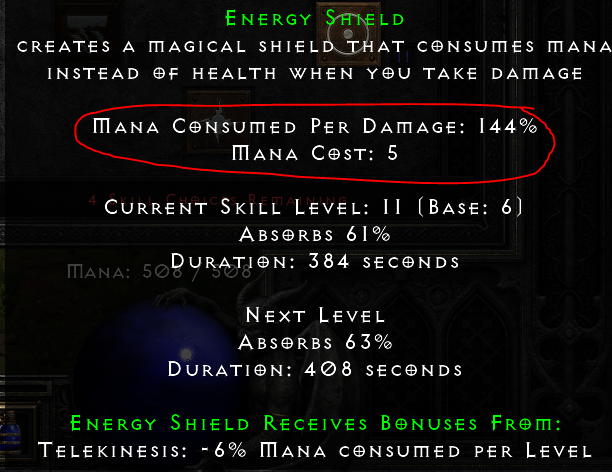 d) if I had 2000life and 500mana it would be better if dmg which went to mana would be as less as possible so I wouldnt run out of mana all the time -> maxining TK