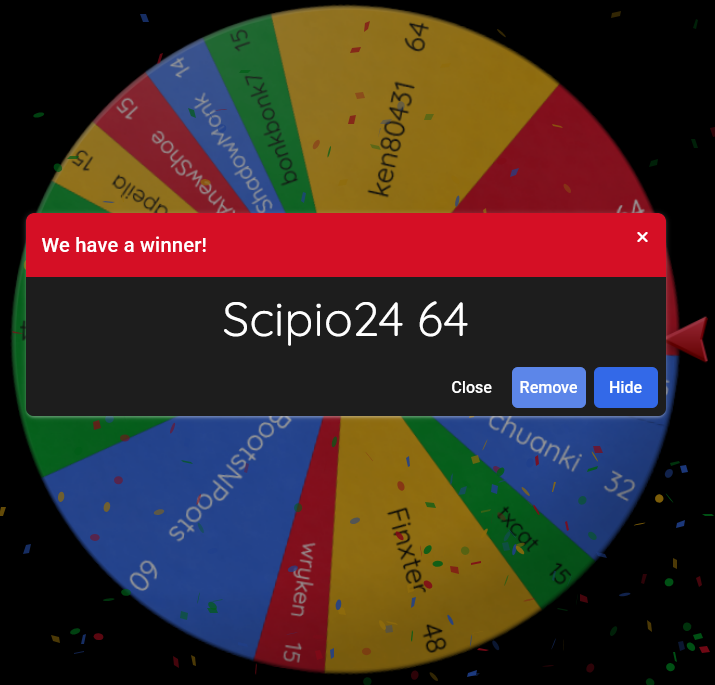 The second winner of the sixty-fifth round iiiiiis.... @Scipio24, who had a 14.68% chance to win! (out of 13 participants)