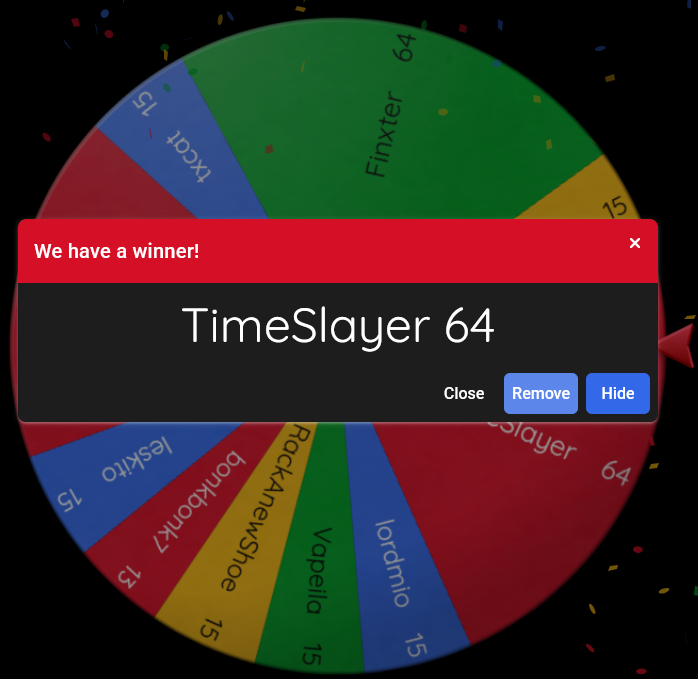 woohoo! yeay!!!ShadowHeart wrote: 2 months agoThe first winner of the sixty-ninth round iiiiiis.... @TimeSlayer, who had an 22.94% chance to win! (out of 10 participants)