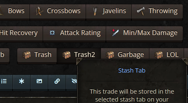 My tabs are just full of honesty.Hoost07 wrote: 4 years agoIt's true. The image and the 'trash' names on the stash tabs, definitely mean your reply was higher quality.