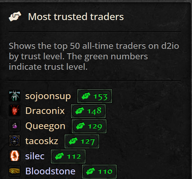 Is there any way to receive reputation for this on diablo2.io like you do for trades?