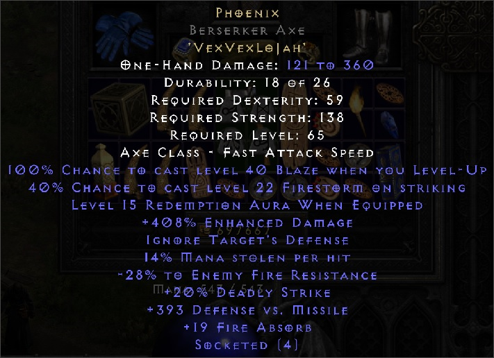 Previously I've made a Berserker Axe based one that rolled at 408% ED and 15 to Redemption, but I don't remember now what was the base ED. Even though I can make it off of this PB, I don't see how it could be better than the zerk based. I've checked what's offered for this rune word for trading on the site, and shields are listed only. Is it because Phoenix weapons are not that popular or useable? Saving on in-game Gold for unneeded repair is irrelevant to me, especially considering how expensive this rune word is in terms of runes necessary. Can attack speed be that much of a deciding factor in this case?