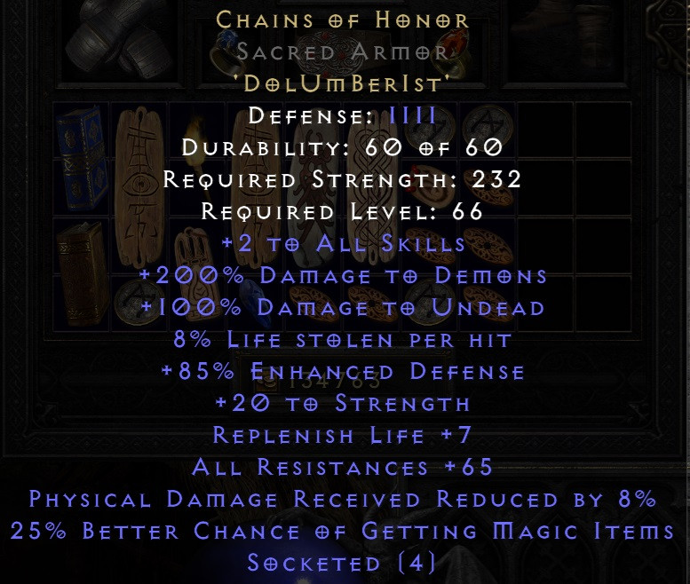 Yea, the MF I have on switch is mainly for when Travincal is a Tzone. I actually rarely run pits with my zerker.Manowar wrote: 1 year agoSwitch contains Grief and Stormshield and for the mf I use whole immortal set up full with Ist and take a pit run.On the otherhand high rune drop doesn't have connection with mf,it's about game luck and kill speed![]()