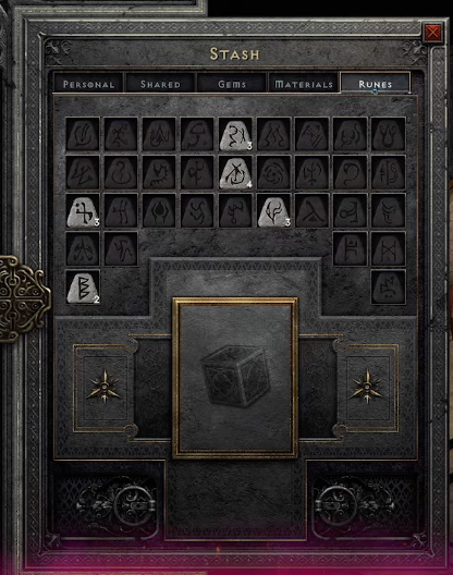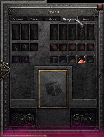 - Advanced stash tabs - dedicated tabs for Gems, Materials, and Runes. Gems, Materials, and Runes can all be stacked.