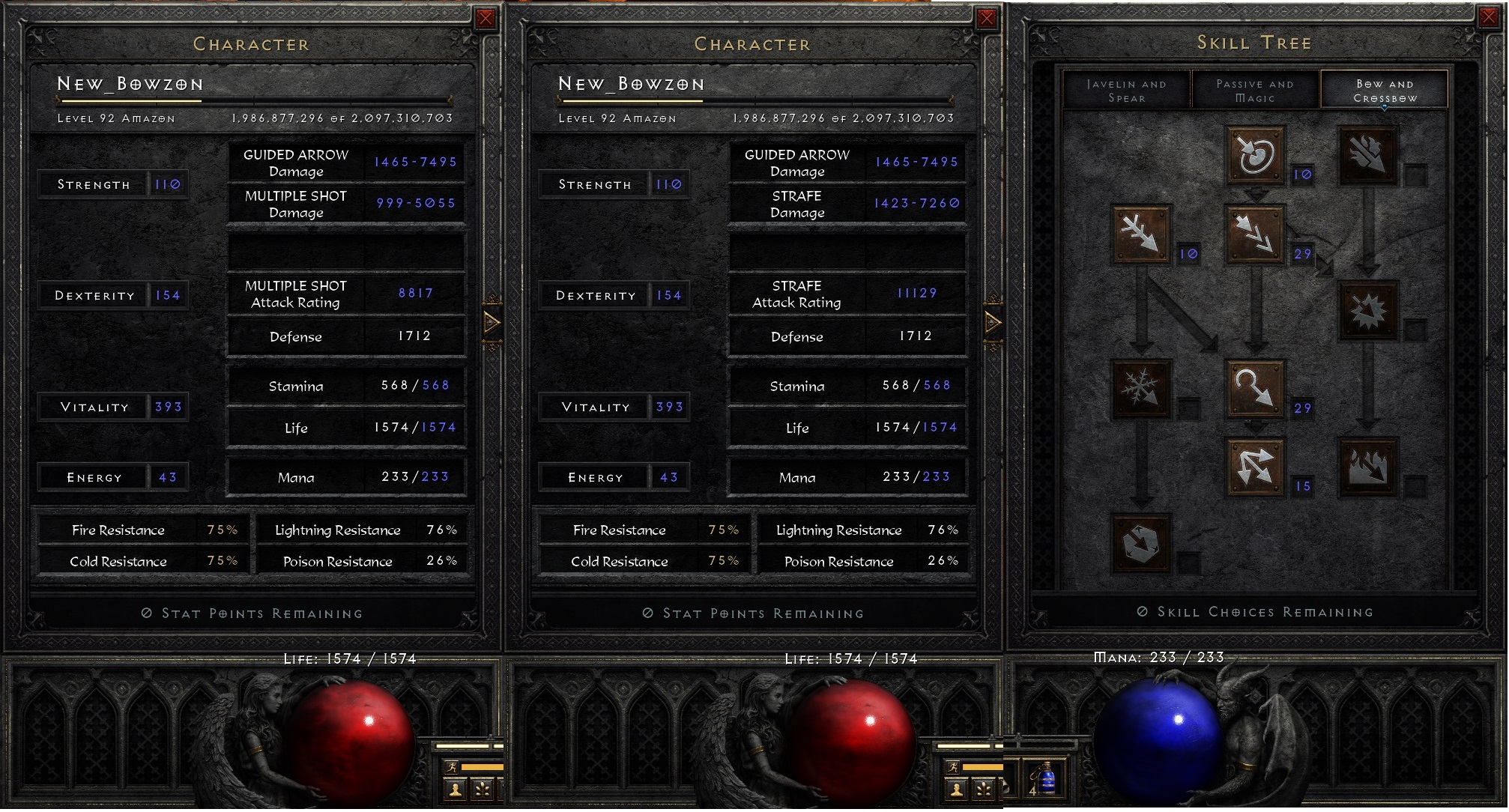 I could go on for paragraphs about how much better my 2.4 triple-aura bowazon's Strafe is compared to my LoD M'avinazon's Strafe, but that doesn't mean she's dealing the correct amount of damage in accordance with the 2.4 patch notes' claim of Strafe's damage penalty being revoked.
