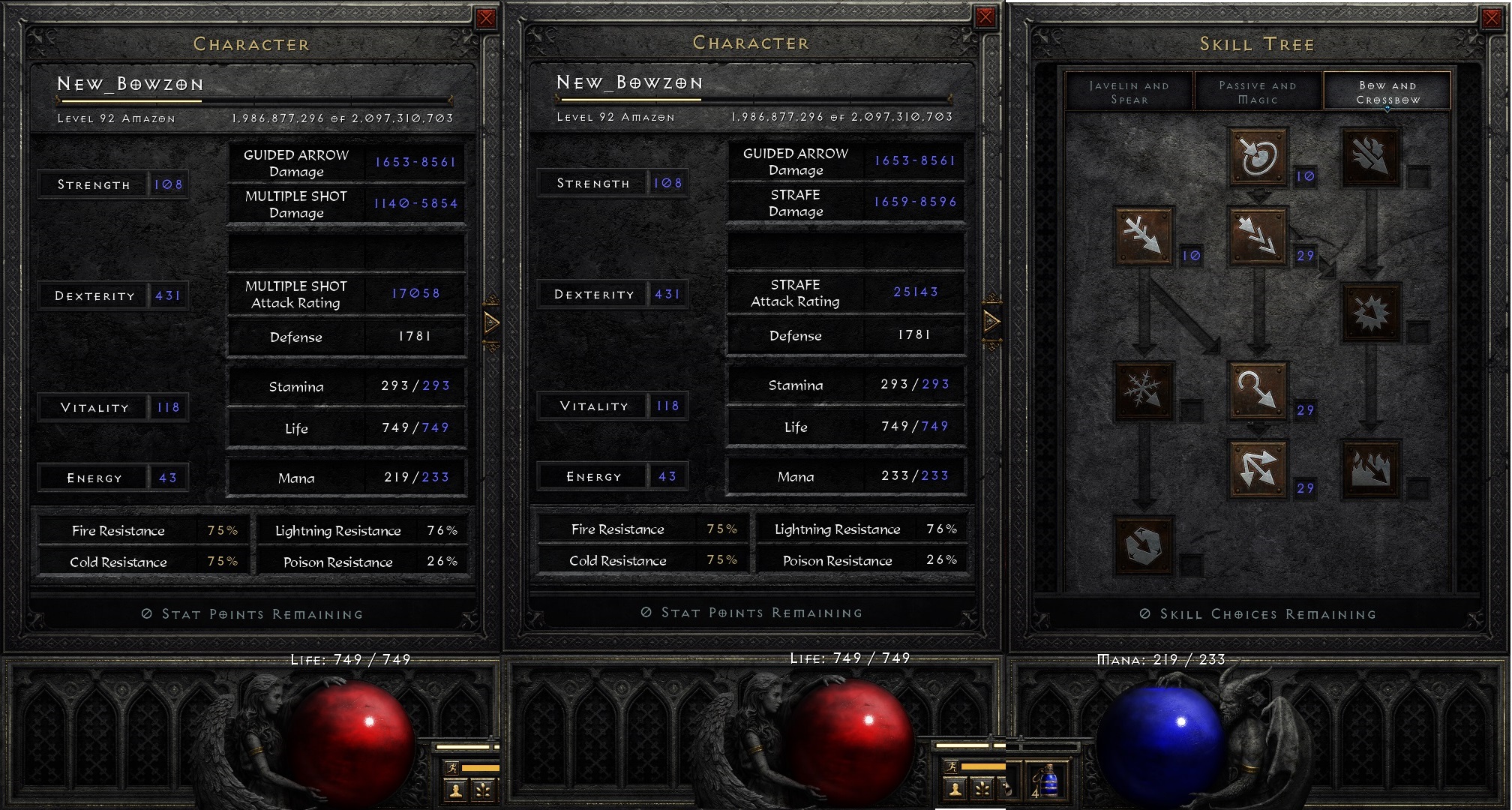 I think you are missing the point of bowas videos. literally everything he tested was already available knowledge from 20 plus years of people playing the game or self appointed experts as you called it lol. save for the new rune words and buffed skills/2.4 changes. Bowa was testing all these claims and purposed "best setups" for himself with some pretty great and accurate results. I very much understand an analytical approach as i am the same way. but in the science community pier review is very much a trusted thing. everything in bowas videos corroborates the findings and claims that you will find when looking back at old forum posts and guides. Solo offline with hero editor is a godsend for testing things your self or even theory crafting. So too my point finally if bowa says Strafe is bugged I believe him. he has no reason to lie about that or put his reputation on the linemhlg wrote: 3 years agoYes I see that, thanks for putting me straight. That being said, I am still dubious of the video and its results, but then I'm skeptical of a lot of things self-appointed experts are posting on the web and Youtube. I need to see raw technical data, the actual defects in the software code that supports the claims. Empiricism is important, it's how I decide on what does and what doesn't work, but it only goes so far in nailing down the finer technical points, and it doesn't point out the actual functional defects of the game software. Since this is Blizzard I'm certain a great number of defects exist. They seem to regularly regularly dick with the game, and a clue of when that is about to happen is when they announce something such as the magic find weekend.Snakecharmed wrote: 3 years agoYou're interpreting that table incorrectly. The damage is a bonus on top of the normal arrow's damage, not a percentage of the normal arrow. If what you said was true, then a level 1 Strafe arrow would do 95% less damage than a normal arrow and that is clearly not the case.
