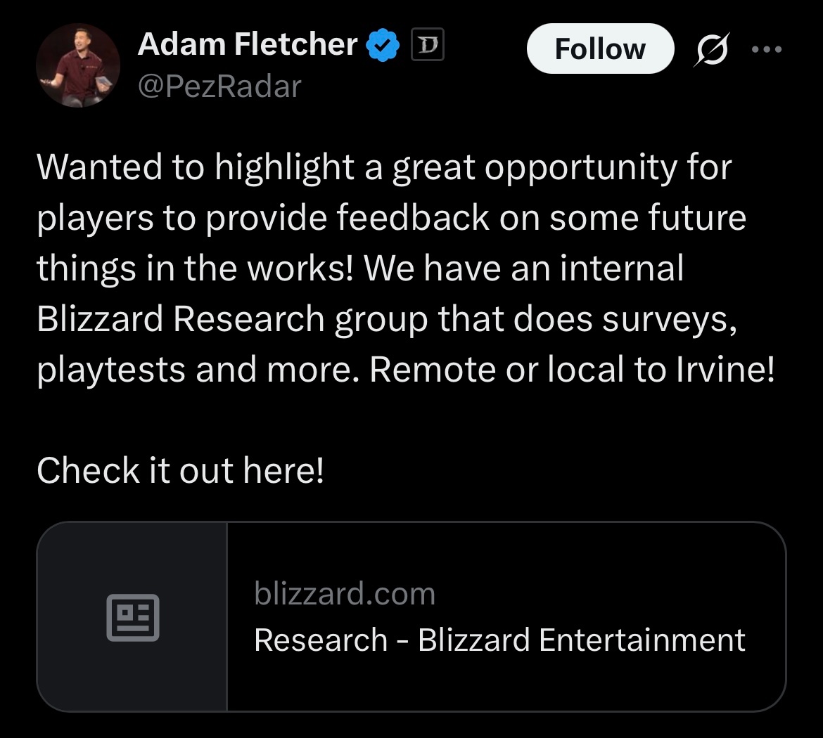 Just to comment here. Xtimus, Shadow, and myself noticed these jobs postings even upwards of 6-8+ months ago. It could insinuate a possible new hire that would focus on legacy which includes D2R, but this is speculation at best.