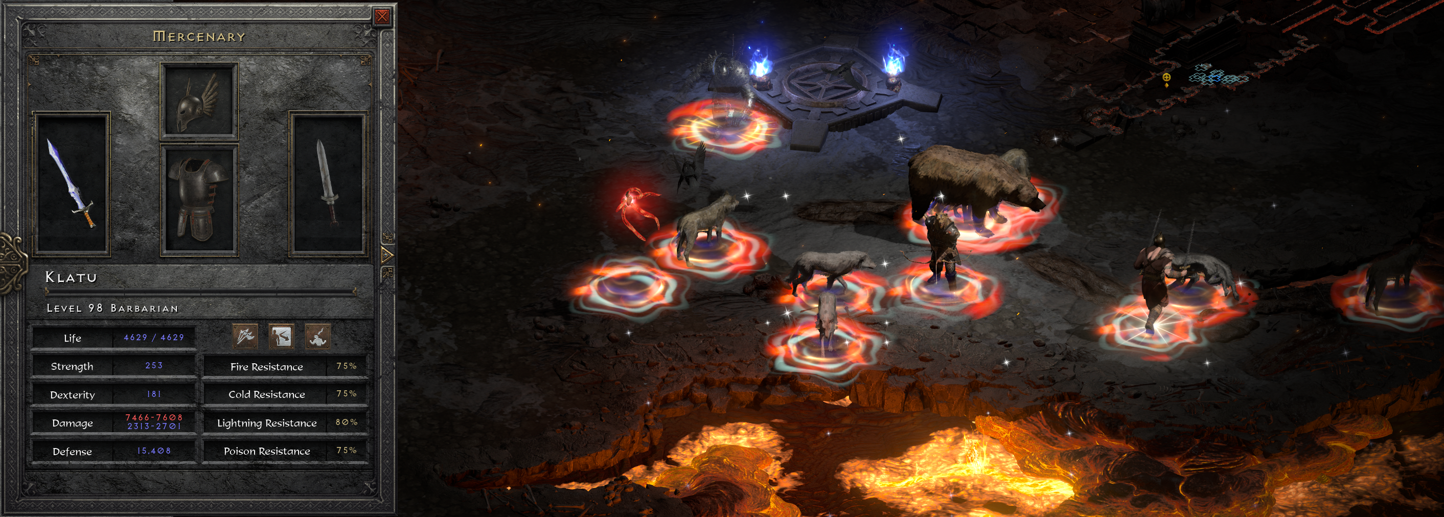 Ok, you’ve summoned everyone needed, now everyone needs to be buff’d with Shout, bo and Battle Command. With bo max’d Everyone’s going to have double health and increased armour. Obviously you’ll need to reapply the warcries as necessary. I honestly don’t know what everyone’s damage is, but your merc is at least going to be like >10k, likely much more, which is crazy!