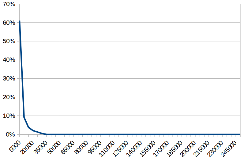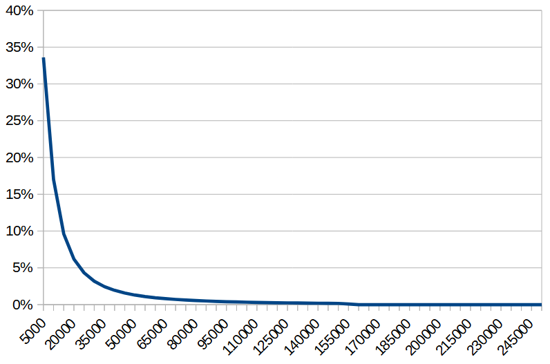 Say you're fighting Lilith on a lvl 95. Then the "reduction in chance to get hit" (i.e. the absolute impact) for every 5k extra def essentially looks as follows: