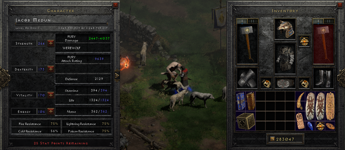 So. I have been, as a Non-Ladder Softcore Druid, playing for a while, trading and grinding. Currently sit at lvl 86. I have Bul-Kathos set equipped.