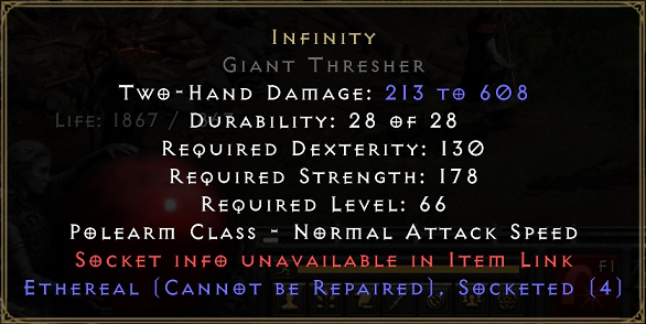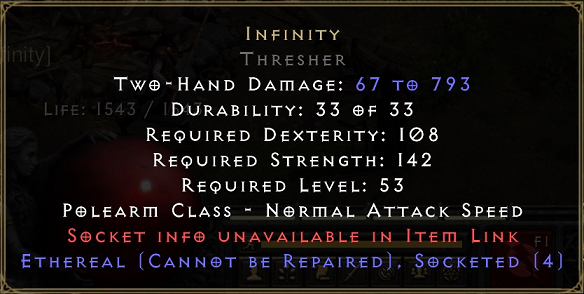 The hover tool tip works fine. The issue pops up when you link that Infinity via chat and then look at the chat link, not hovering over the item itself.
