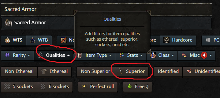 When listing a superior item, what's the format to have an icon displayed after Superior, Ethereal, etc as shown below? Every time I add "Superior" before the item name it turns blue and the icon disappears.
