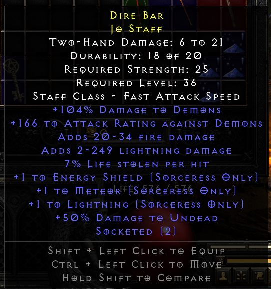 35000 Gold from a vendor. Even if it would be a better roll (2 sorc, 3 lightning) it would be still inferior to other options. Simply there are no rare 2 handed staves worth anything.Aria wrote: 2 months agoIs this worth anything? I figure the extra lightning damage + the sockets could make it worth something to a lightning sorc build, but I have no idea what a fair price would be.
