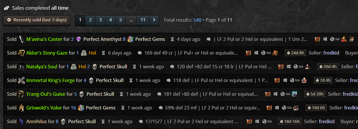 but I found a little weird and a huge coincidence that I sold 1 item from each "class set" in sequence, except Tal Rasha's Wrappings