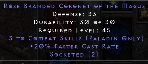 A good thing about this Coronet is that you could simply clean it up with Hel runes and stack other things for different paladin builds. Maybe IAS jewels for a zealer, for example.