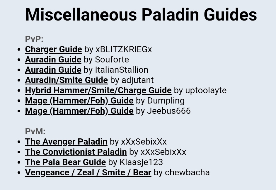 Again, I didn't come up with the names, just see them being used so I know what I'm clicking on. In that guide list in your example, would u know if the auradin guide was going to start talking about double Dream, or HoJ/Dragon, or both? Even though I have no emotional investment into these names, I find it convenient when they start with "Tesladin guide" or "Dragondin guide" because then I know what they are going to be explaining before I go in. I don't have to go in and then see HoJ in the weapon slot to understand I've wasted my time.Cryptography wrote: 4 years agoDragondin? Oh boy.MarcWizard wrote: 4 years agoI'm not emotionally invested into this name thing. But as I did my research I saw Tesladin being used to specifically refer to the Holy Shock Auradin, whereas Auradin is a larger category of Offensive Aura paladins, which includes Dragondins (Fire based).
