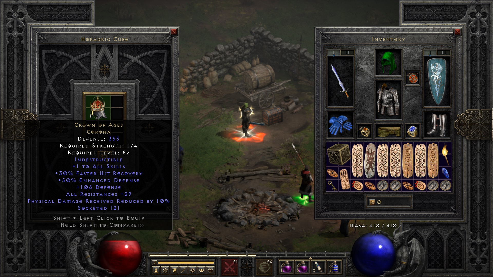 Crazy day for me; first i got 3% frw/ 5 all res small charm (prob best sc I have ever found and i play d2 for more than 20 years)... I was preparing to call the day and I saw that cows are terrorized...as I opened portal Cow King & minions jumped on me and my Merc... Merc last hit King and... 2 OS Crown of Aegis dropped... 45 min later, while I typing this note, I'm still shaking...Sry 4 my Eng, I'm not a native speaker.
