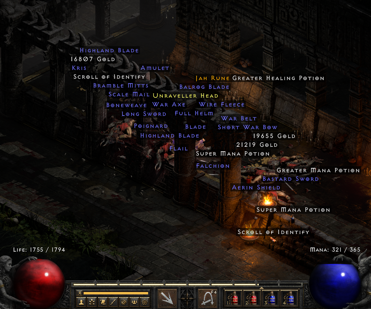Brief history about me, ever since I was a teenager, I've played D2 on and off for nearly 20 years, I've played tons of Ladder seasons and vanilla offline single-player for hundreds of hours. Usually when I play a Ladder season, I typically get to around Level 90 and give up from burn out usually due to the XP grind and how rare some loot is at that stage of the game. However last week a drop I had never seen in my life occurred, dropping in the TZ version of Disused Fane...