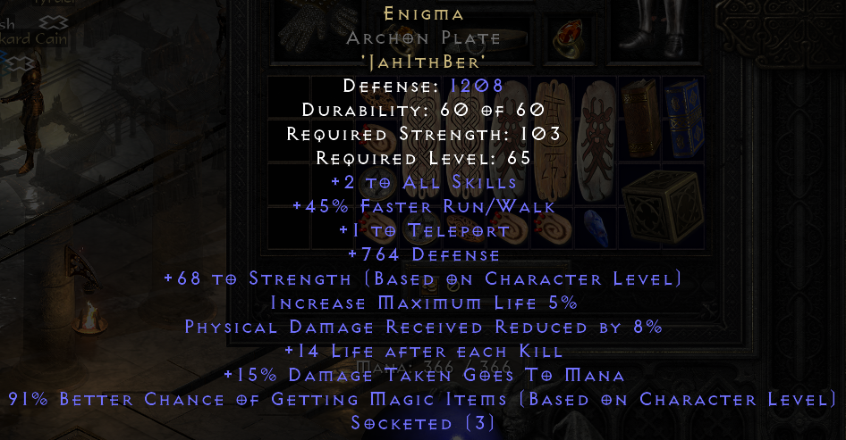 I have also just obtained my first Jah. I am just in the process of trading for a Mage Plate with > 250 def (because really, who wants Enigma with < 1000 def).
