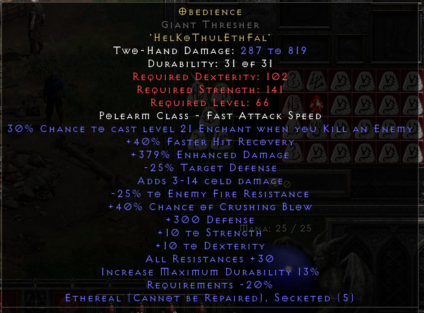 Also found a 45 All Res Vortex Shield with 217 Def and managed to get 3 sockets with cube gamble recipe. Might try to push my luck even further with a Dream roll for my Pally..