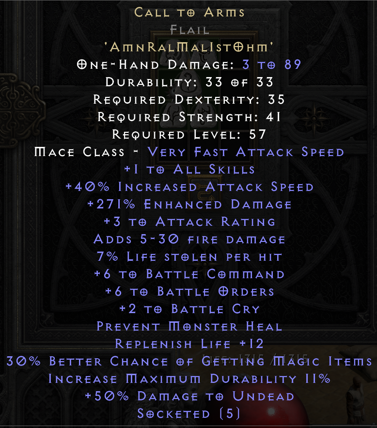 So I decided to level up a fire Druid, just got into nightmare and I’m like “I gotta have something better than +1 skills in my jewlery mule” I check and I found this baby, no idea how long I’ve had this or where I found it, but it’s probably the most valuable* amulet I got.