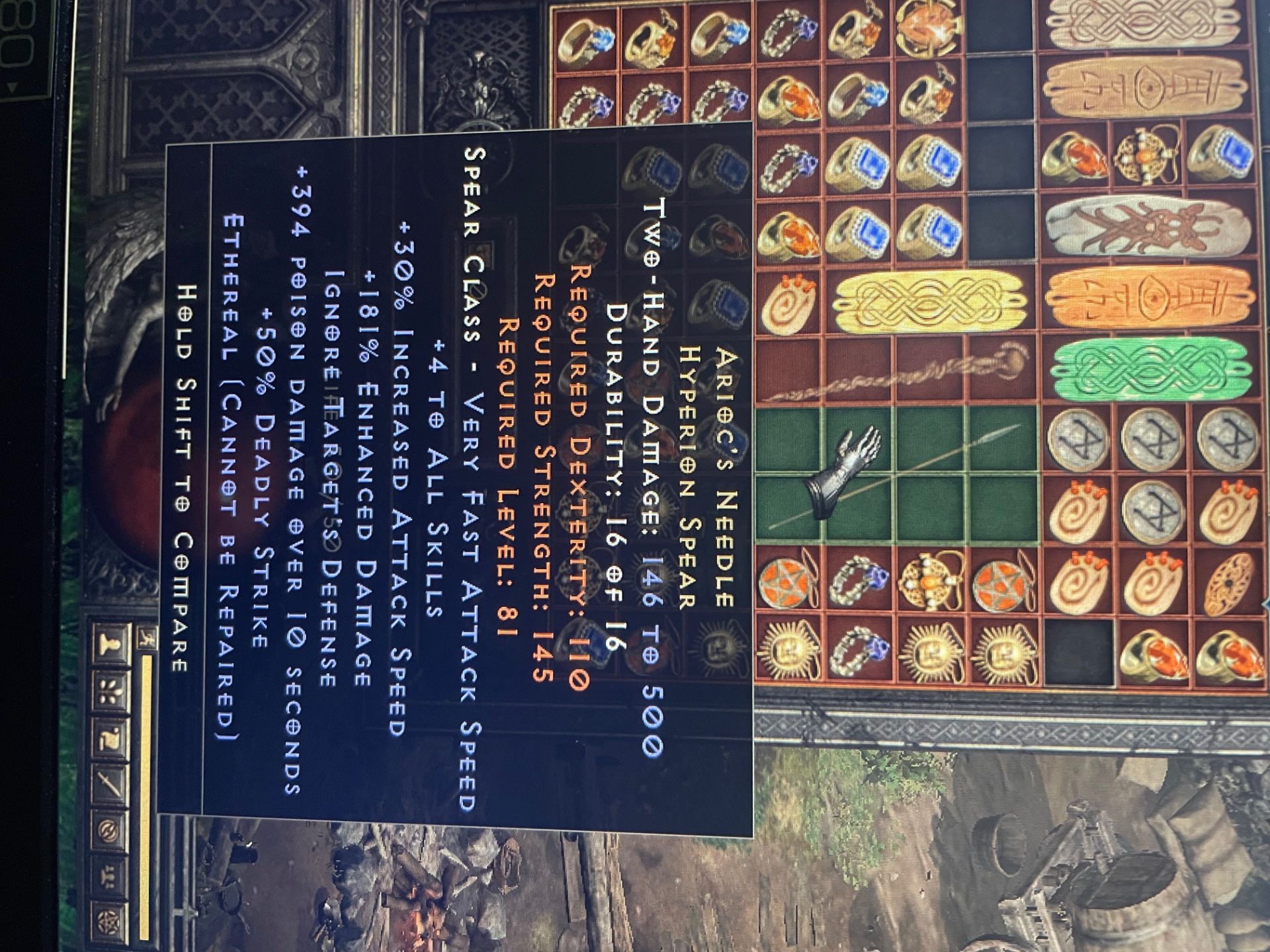 I got Arioc's Needle a few days ago but sadly it was only +3 to skills.FlippyZippy wrote: 1 year agoTZ Andi being the most ridiculous troll in all of Sanctuary. Can't even be mad, got 3 Grail items at the same time.