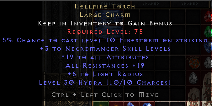 Two weeks ago for nostalgic reasons I started to play a Zealer (was the first Char I played when D2 was released) because my boys wanted to start with new Chars. It is surely not the best charm for him but until I ever will start a hammerdin it goes to him