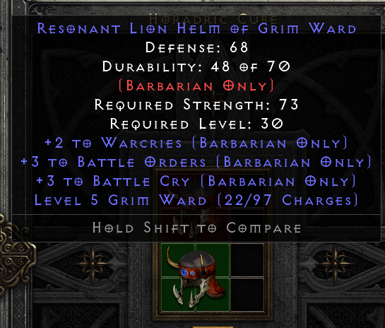 Looks like a very good helmet for a singer barb!HaveANiceDay wrote: 1 year agoHmmm, did I get lucky actually? Is it worth socketing with Larzuk?