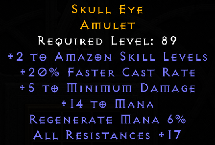 Some weeks ago I decided to go for 200 FCR on my Lightning Sorc. Even though these builds might not be the best damage dealers, I love the fast paced play style that comes with it. So I equipped some crappy Blue 10 FCR Amulet, Skin Of the Viper Magi and so on. Of course a 2-20 Sorc Amulet would be nice, so I started selling low value items for crafting materials (I hesitate to spend runes for it). After ~70 amulets I got my first more or less plain 20 FCR Amulet (without skills). I was happy and equipped 15/Lightning Ormus' Robes. Some amulets later I got this beauty and I am still stunned. My sorc might not be happy about it, but I for sure am