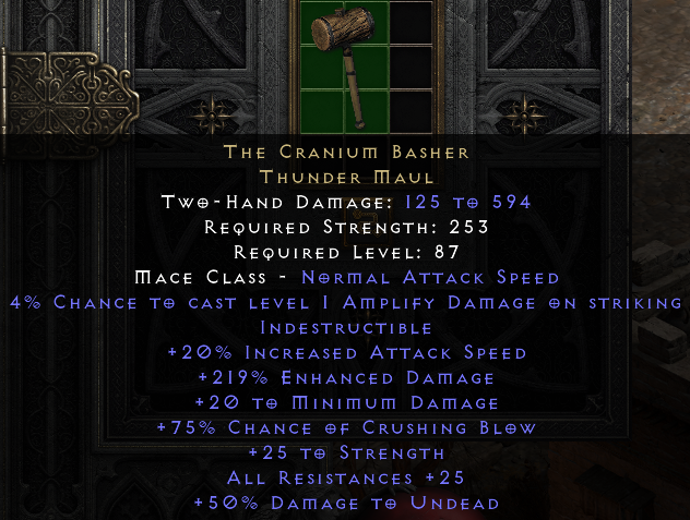 For this reason I extended my playing style and made a character that strictly uses ethereal equipment only, which (1) makes you happy about uniques etc. dropping as ethereal (which would otherwise be considered a "bad" drop), and (2) makes you happy about really unspectacular drops ("ethereal pair of gloves! I can use that!").