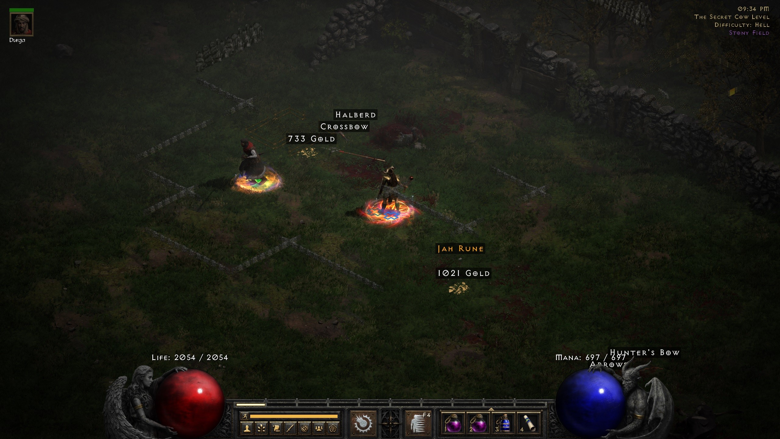 Playing with my fire Amazone. The funniest character I played in the last season, but she struggled too much in a game full of people. Well, I was playing alone and got a Gul in Arcane Sanctuary and 15-20 min later Jah in the cow level :O !