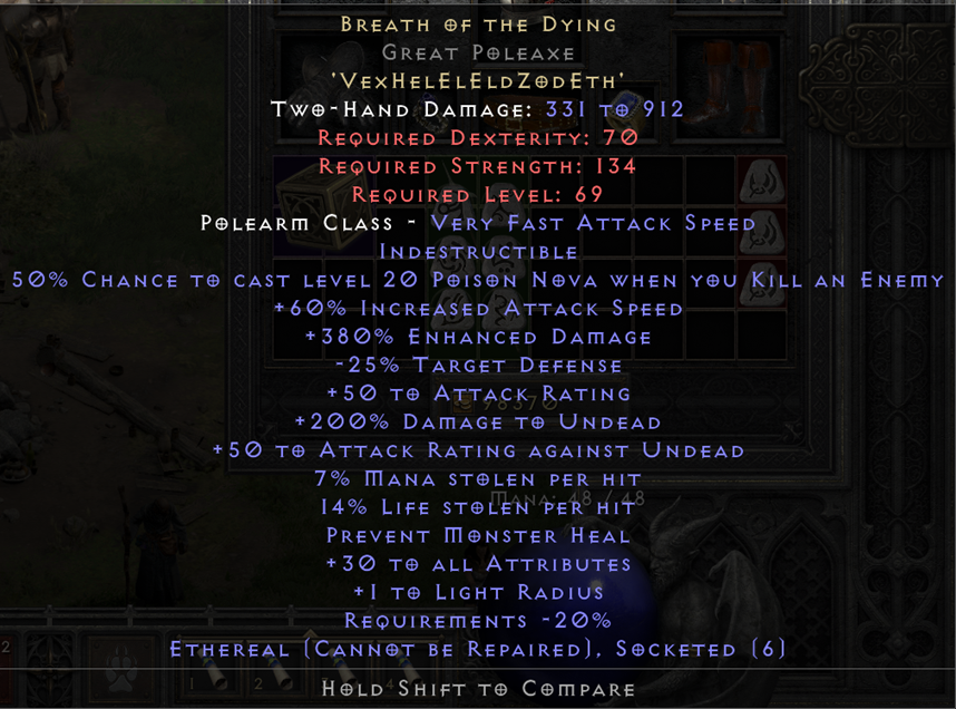 I dont play offline. Im playing only ladders when ever I am bothered toghostpos wrote: 5 months agoAre you playing high players count, offline? Maybe some folks disagree but I would never run LK online, players count 1.Semirotta wrote: 5 months agoAll I have gotten 20+ years of playing diablo 2 is Um at highest from LK. Still continuing to go there none the less as its so "easy" way to get high rune if luck is just hitting the right spot. Thats a really great drop from there.ghostpos wrote: 5 months agoLower Kurast aka 'LK' is actually brutal. I cannot tell you how many weeks/hours of nothing but the occasional mid-rune. Boom got a good one this evening! Ber LK.jpg