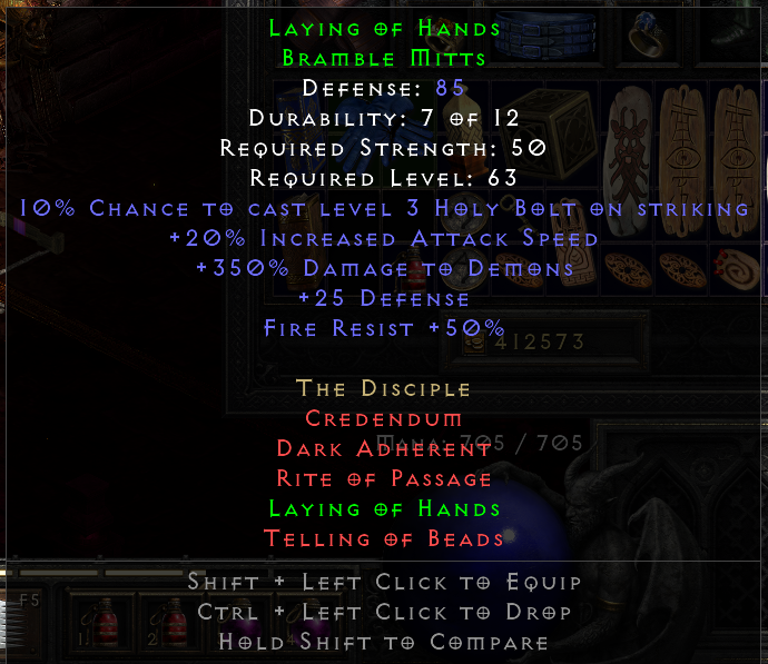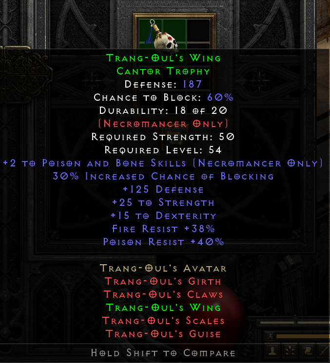 This tool provides a means of tracking and sharing your progress towards the Holy Grail. Completing a standard Holy Grail means collecting all Uniques, Sets, and Runes in the game. When marking each item as found, you may include several details about the drop. If you are playing offline, you can also upload .d2s or .d2i (Shared Stash) files to automatically import your collection.