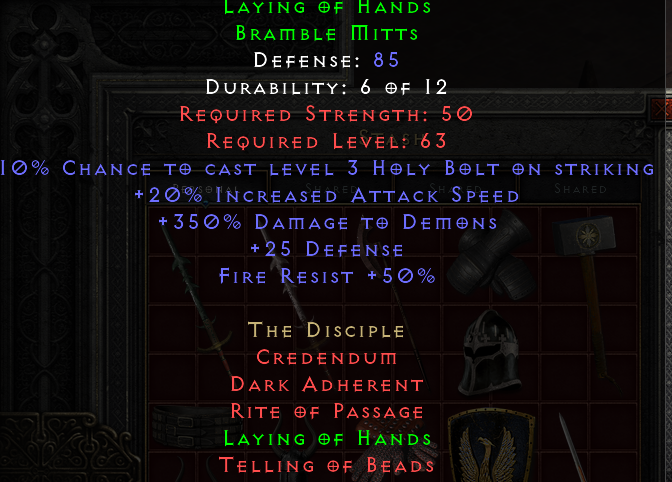This tool provides a means of tracking and sharing your progress towards the Holy Grail. Completing a standard Holy Grail means collecting all Uniques, Sets, and Runes in the game. When marking each item as found, you may include several details about the drop. If you are playing offline, you can also upload .d2s or .d2i (Shared Stash) files to automatically import your collection.