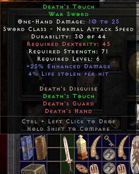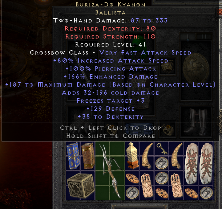 This tool provides a means of tracking and sharing your progress towards the Holy Grail. Completing a standard Holy Grail means collecting all Uniques, Sets, and Runes in the game. When marking each item as found, you may include several details about the drop. If you are playing offline, you can also upload .d2s or .d2i (Shared Stash) files to automatically import your collection.