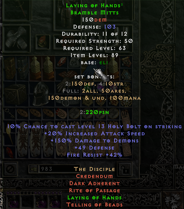 This tool provides a means of tracking and sharing your progress towards the Holy Grail. Completing a standard Holy Grail means collecting all Uniques, Sets, and Runes in the game. When marking each item as found, you may include several details about the drop. If you are playing offline, you can also upload .d2s or .d2i (Shared Stash) files to automatically import your collection.