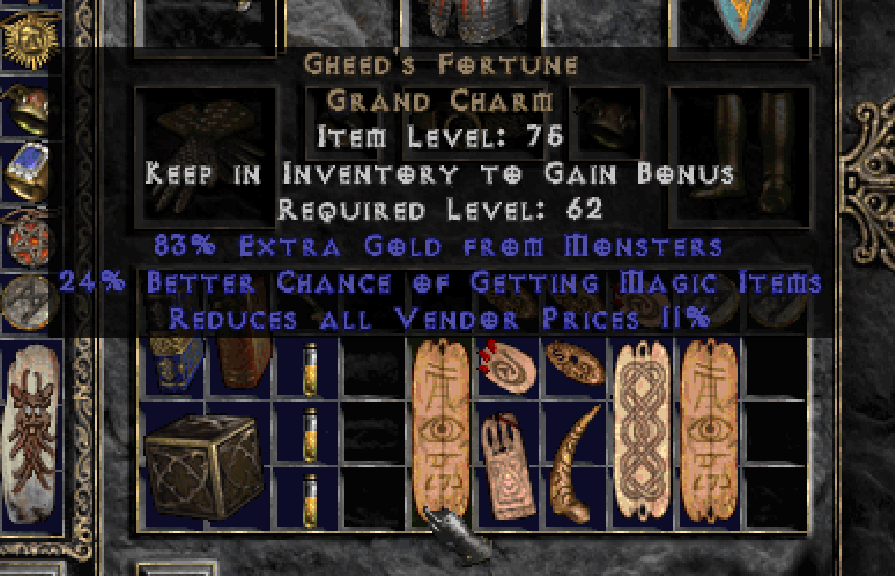 This tool provides a means of tracking and sharing your progress towards the Holy Grail. Completing a standard Holy Grail means collecting all Uniques, Sets, and Runes in the game. When marking each item as found, you may include several details about the drop. If you are playing offline, you can also upload .d2s or .d2i (Shared Stash) files to automatically import your collection.