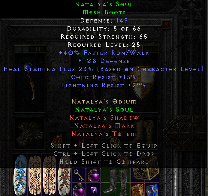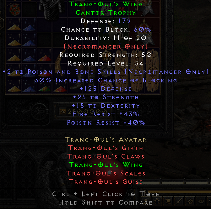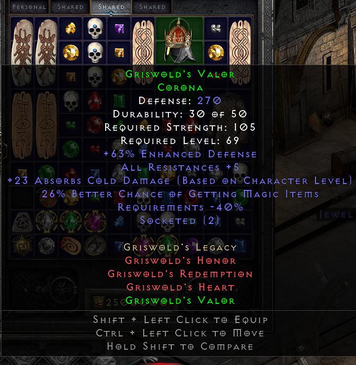 This tool provides a means of tracking and sharing your progress towards the Holy Grail. Completing a standard Holy Grail means collecting all Uniques, Sets, and Runes in the game. When marking each item as found, you may include several details about the drop. If you are playing offline, you can also upload .d2s or .d2i (Shared Stash) files to automatically import your collection.